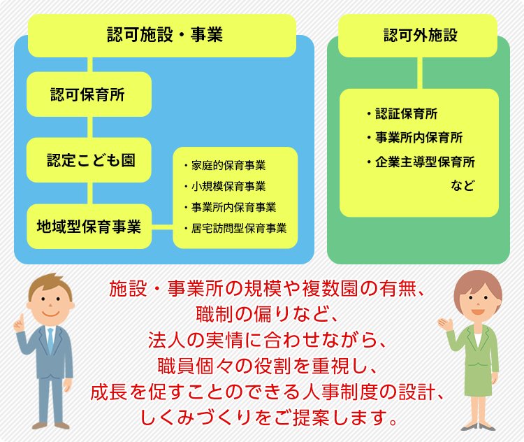 - 社会福祉法人(保育系)の給与制度・人事評価制度・研修制度の構築支援