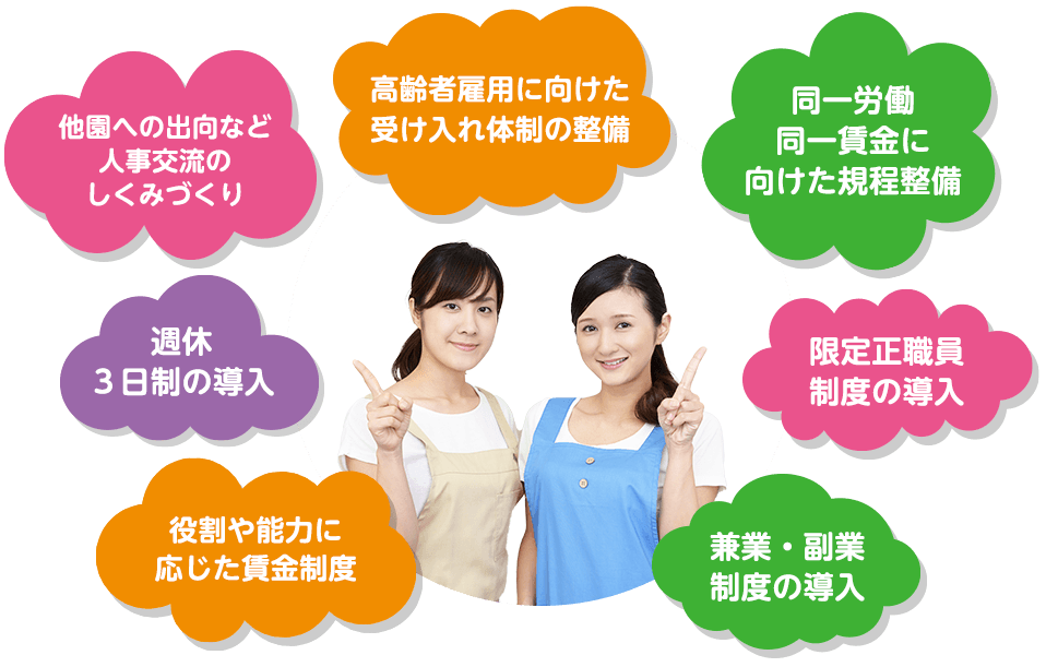 成長を育むことのできる職場環境づくりに向けたご提案等を通じ、保育サービス事業者の皆さまを応援いたします。